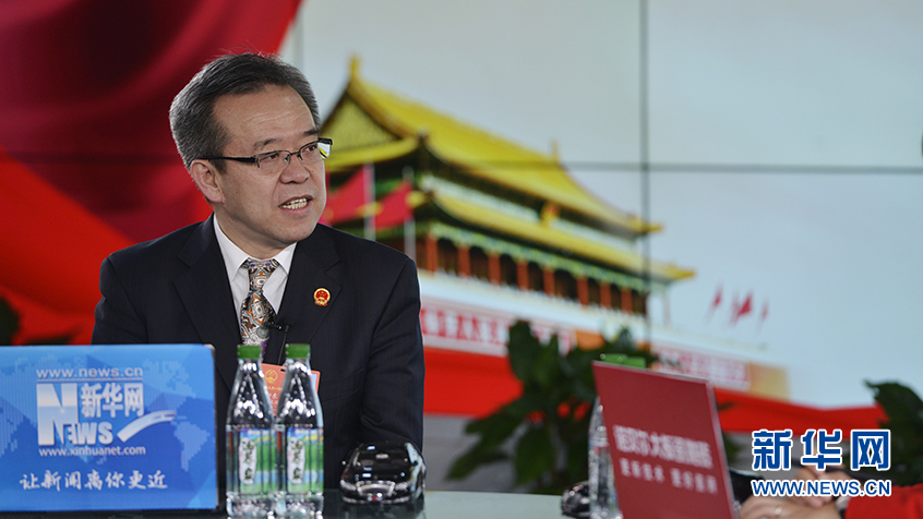 圖為15日,全國人大代表、甘肅省酒泉市委書記吳仰東做客新華網(wǎng)2018全國兩會特別訪談。新華網(wǎng) 李相博攝
