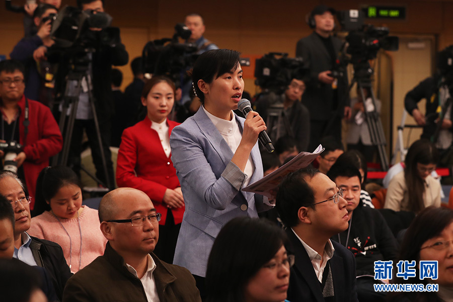 十三屆全國(guó)人大一次會(huì)議新聞中心3月17日(星期六)15時(shí)在梅地亞中心多功能廳舉行記者會(huì),邀請(qǐng)環(huán)保部部長(zhǎng)李干杰就“打好污染防治攻堅(jiān)戰(zhàn)”相關(guān)問(wèn)題回答中外記者提問(wèn)。圖為中國(guó)經(jīng)濟(jì)導(dǎo)報(bào)、中國(guó)發(fā)展網(wǎng)記者提問(wèn)。新華網(wǎng)/中國(guó)政府網(wǎng) 曲植 攝