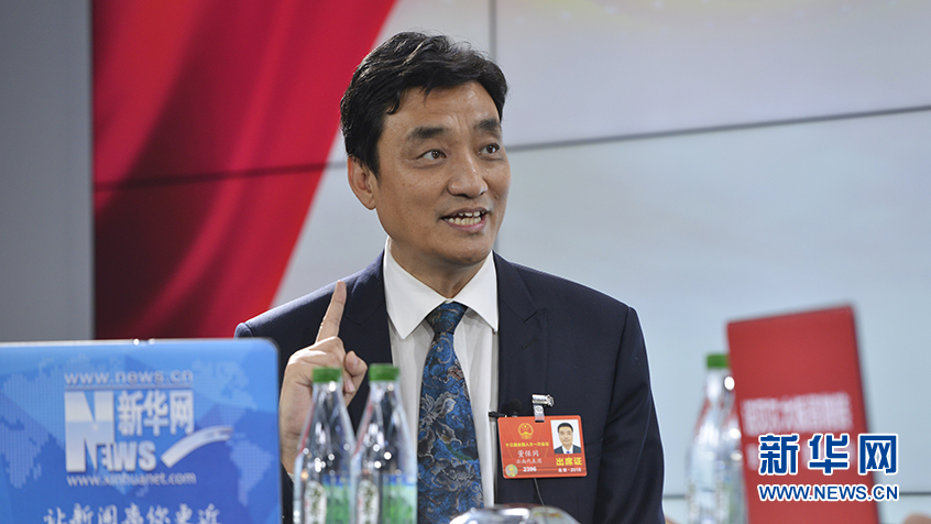 圖為18日,全國人大代表,云南省曲靖市委副書記、市長董保同做客新華網(wǎng)2018全國兩會特別訪談。新華網(wǎng) 李相博攝