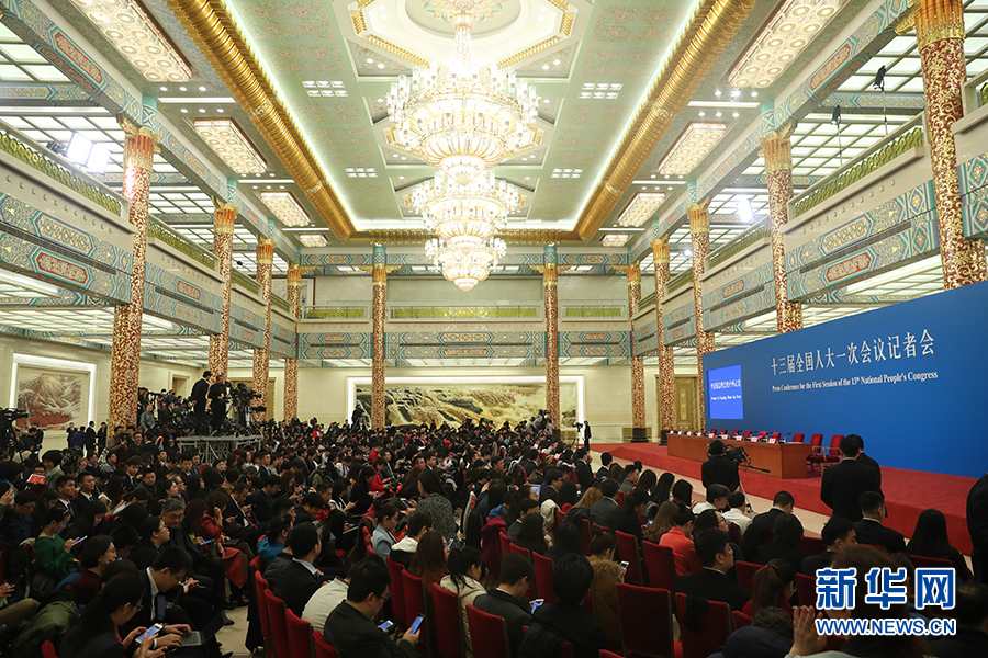 3月20日上午,十三屆全國(guó)人大一次會(huì)議閉幕后,國(guó)務(wù)院總理李克強(qiáng)將在人民大會(huì)堂三樓金色大廳會(huì)見(jiàn)采訪十三屆全國(guó)人大一次會(huì)議的中外記者并回答記者提出的問(wèn)題。圖為記者會(huì)現(xiàn)場(chǎng)。 新華網(wǎng)/中國(guó)政府網(wǎng) 翟子赫 攝