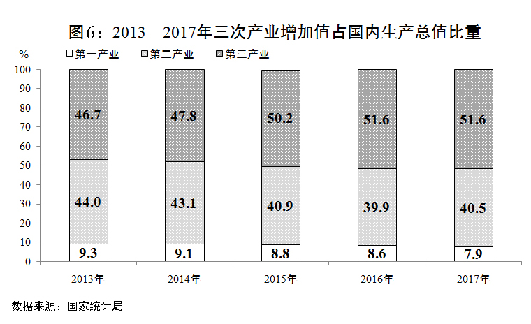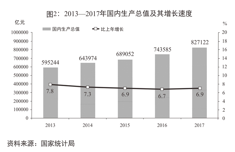 總的來(lái)看,2017年經(jīng)濟(jì)運(yùn)行穩(wěn)中向好態(tài)勢(shì)持續(xù)發(fā)展,決勝全面建成小康社會(huì)又向前邁出堅(jiān)實(shí)一步。在國(guó)內(nèi)外經(jīng)濟(jì)形勢(shì)極其錯(cuò)綜復(fù)雜的情況下,經(jīng)濟(jì)社會(huì)發(fā)展取得這樣的成績(jī)來(lái)之不易,這是以習(xí)近平同志為核心的黨中央堅(jiān)強(qiáng)領(lǐng)導(dǎo)的結(jié)果,是習(xí)近平新時(shí)代中國(guó)特色社會(huì)主義思想科學(xué)指引的結(jié)果,是黨的十八大以來(lái)黨中央、國(guó)務(wù)院一系列重大方針政策和重大舉措累積效應(yīng)的結(jié)果,更是全黨全國(guó)各族人民共同奮斗、各方面工作久久為功的結(jié)果。五年來(lái),各地區(qū)各部門(mén)以習(xí)近平新時(shí)代中國(guó)特色社會(huì)主義思想為指引,堅(jiān)持穩(wěn)中求進(jìn)工作總基調(diào),貫徹新發(fā)展理念,“十二五”規(guī)劃勝利完成,“十三五”規(guī)劃順利實(shí)施。一是經(jīng)濟(jì)實(shí)力顯著增強(qiáng)。國(guó)內(nèi)生產(chǎn)總值從2012年的54萬(wàn)億元增加到82.7萬(wàn)億元,年均增長(zhǎng)7.1%,對(duì)世界經(jīng)濟(jì)增長(zhǎng)的貢獻(xiàn)率超過(guò)30%。二是發(fā)展質(zhì)量和效益明顯提高。全國(guó)一般公共預(yù)算收入從11.7萬(wàn)億元增至17.3萬(wàn)億元。全員勞動(dòng)生產(chǎn)率從人均7.3萬(wàn)元提高到10萬(wàn)元以上。居民人均可支配收入從1.7萬(wàn)元增至2.6萬(wàn)元,增速總體快于經(jīng)濟(jì)增長(zhǎng),城鄉(xiāng)居民收入倍差由2.88∶1下降至2.71∶1。單位國(guó)內(nèi)生產(chǎn)總值能耗降低20.9%。三是經(jīng)濟(jì)結(jié)構(gòu)發(fā)生重大變革。需求結(jié)構(gòu)“消費(fèi)超投資”,最終消費(fèi)對(duì)經(jīng)濟(jì)增長(zhǎng)的貢獻(xiàn)率提高了近4個(gè)百分點(diǎn)。產(chǎn)業(yè)結(jié)構(gòu)“三產(chǎn)超二產(chǎn)”,服務(wù)業(yè)占國(guó)民經(jīng)濟(jì)的比重不斷上升。區(qū)域發(fā)展格局不斷優(yōu)化,新型城鎮(zhèn)化扎實(shí)推進(jìn),8000多萬(wàn)農(nóng)業(yè)轉(zhuǎn)移人口成為城鎮(zhèn)居民。四是新舊動(dòng)能加快接續(xù)轉(zhuǎn)換。供給側(cè)結(jié)構(gòu)性改革扎實(shí)推進(jìn),有效改善了市場(chǎng)供求關(guān)系和企業(yè)盈利狀況。創(chuàng)新驅(qū)動(dòng)發(fā)展戰(zhàn)略深入實(shí)施,天宮、蛟龍、天眼、悟空、墨子、大飛機(jī)等重大科技成果相繼問(wèn)世,新產(chǎn)業(yè)新業(yè)態(tài)新模式層出不窮,傳統(tǒng)產(chǎn)業(yè)通過(guò)改造升級(jí)煥發(fā)生機(jī)。五是市場(chǎng)主體活力持續(xù)釋放。營(yíng)商環(huán)境不斷優(yōu)化,產(chǎn)權(quán)保護(hù)不斷加強(qiáng),公平競(jìng)爭(zhēng)市場(chǎng)環(huán)境進(jìn)一步健全。五年來(lái),國(guó)務(wù)院部門(mén)行政審批事項(xiàng)削減44%,中央層面核準(zhǔn)的企業(yè)投資項(xiàng)目減少90%,中央政府定價(jià)項(xiàng)目縮減80%。大眾創(chuàng)業(yè)萬(wàn)眾創(chuàng)新蓬勃發(fā)展,全國(guó)日均新登記企業(yè)從5400戶上升到1.66萬(wàn)戶,活躍度保持在70%左右,經(jīng)濟(jì)社會(huì)發(fā)展內(nèi)生動(dòng)力不斷增強(qiáng)。六是改革開(kāi)放全面深化。重要領(lǐng)域和關(guān)鍵環(huán)節(jié)改革取得突破性進(jìn)展,主要領(lǐng)域改革主體框架基本確立。“一帶一路”倡議由構(gòu)想逐步變?yōu)楝F(xiàn)實(shí),貿(mào)易大國(guó)地位更加鞏固,利用外資保持穩(wěn)定增長(zhǎng),我國(guó)對(duì)世界經(jīng)濟(jì)發(fā)展的影響力大幅提升。七是民生福祉得到有效保障。城鎮(zhèn)新增就業(yè)6600萬(wàn)人以上,脫貧攻堅(jiān)取得決定性進(jìn)展,貧困人口減少6800多萬(wàn)。覆蓋城鄉(xiāng)居民的社會(huì)保障體系基本建立,基本公共服務(wù)均等化程度不斷提高。八是生態(tài)環(huán)境建設(shè)保護(hù)力度持續(xù)加大。大氣、水、土壤污染防治行動(dòng)取得明顯成效,重點(diǎn)區(qū)域PM2.5平均濃度下降30%左右,生態(tài)文明制度體系加快形成,環(huán)境狀況得到改善。