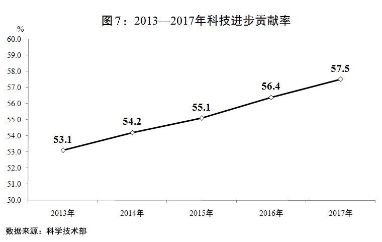 一是創(chuàng)新能力持續(xù)提升。全國(guó)研究與試驗(yàn)發(fā)展經(jīng)費(fèi)投入強(qiáng)度達(dá)到2.12%,科技進(jìn)步貢獻(xiàn)率提高到57.5%。