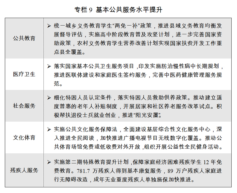 (九)提高保障和改善民生水平。大力推進(jìn)社會(huì)領(lǐng)域供給側(cè)結(jié)構(gòu)性改革,著力補(bǔ)齊公共服務(wù)短板,努力滿足人民日益增長(zhǎng)的美好生活需要。
