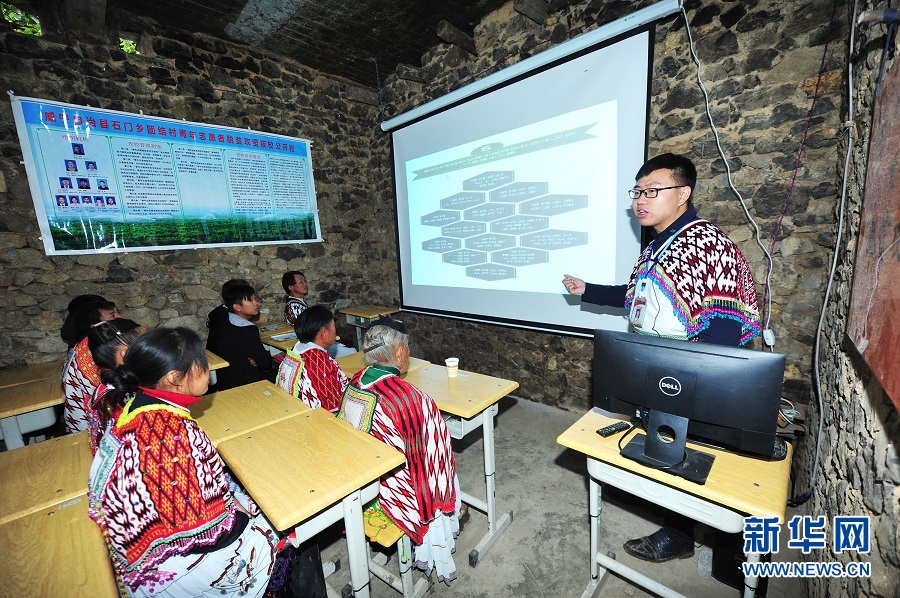 在貴州省畢節(jié)市威寧彝族回族苗族自治縣石門鄉(xiāng)團結(jié)村七里沖組脫貧攻堅講習點,村支書胡鈞溥在向當?shù)厝罕娭v解十九大精神及相關(guān)的扶貧政策(2017年10月23日攝)。逐夢征程,需要價值追求的引領(lǐng)和精神力量的支撐。 “社會主義核心價值觀決定著各民族共有精神家園的發(fā)展方向,必須在各民族中大力培育和踐行”“以社會主義核心價值觀為引領(lǐng),深入挖掘優(yōu)秀傳統(tǒng)農(nóng)耕文化蘊含的思想觀念、人文精神、道德規(guī)范”“引導全社會積極培育和踐行社會主義核心價值觀,樹立良好道德風尚”……今年全國兩會期間,習近平總書記多次強調(diào)培育和踐行社會主義核心價值觀。兩會上,社會主義核心價值觀被寫入國家根本大法。浩渺行無極,揚帆但信風。兩會結(jié)束后,代表委員們奔赴大江南北,與各地干部群眾一起,以實際行動推動社會主義核心價值觀建設(shè)落細落小落實,持續(xù)構(gòu)筑中國精神、中國價值、中國力量,為劈波斬浪的“中國號”巨輪揚起團結(jié)奮進的精神風帆。新華社記者 陶亮 攝