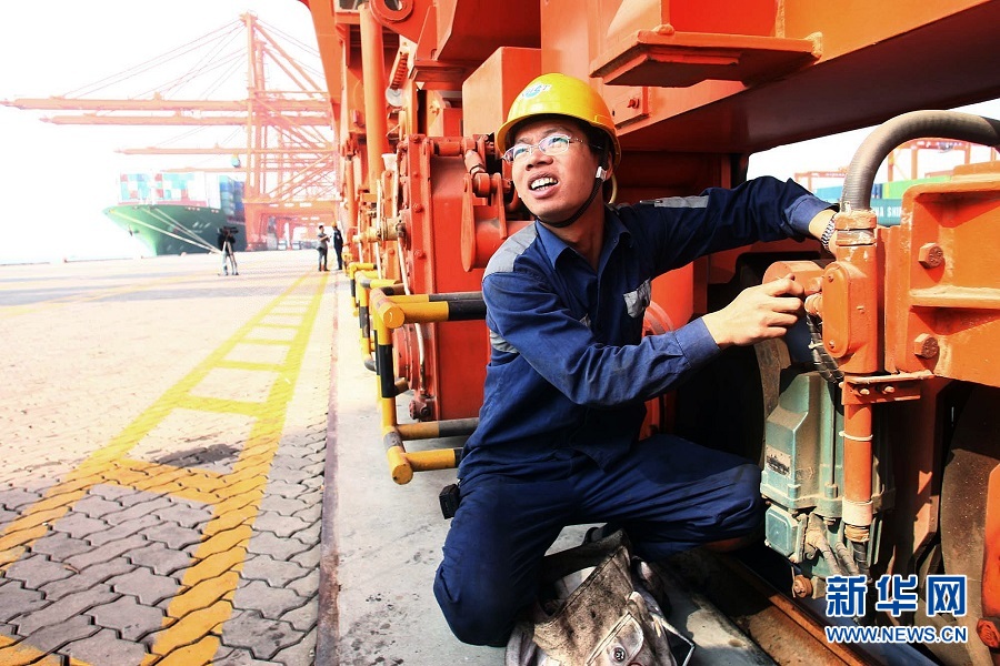 馮鴻昌在檢修港口設(shè)備(2007年12月7日攝)。從業(yè)21年,馮鴻昌從一名普通學徒起步,一步步成長為廈門集裝箱碼頭集團有限公司高級技師、全國勞動模范,榮獲中華技能大獎。他的微信頭像里,“匠人匠心”四個字分外顯眼。逐夢征程,需要價值追求的引領(lǐng)和精神力量的支撐。新華社記者 姜克紅 攝