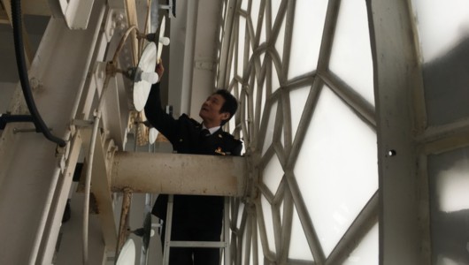 2018年最后一天,上海海關(guān)不上班,但魏云寺依然保持他3天一個(gè)輪回的節(jié)奏——坐電梯到海關(guān)大樓頂樓,打開一扇門,沿著僅容一人通行的鋼制螺旋扶梯,踩69級臺階,登上鐘樓機(jī)芯房,給大鐘上發(fā)條并校正時(shí)間,全程15分鐘。如此重復(fù)性工作,看上去并無太多技術(shù)含量,要說他最大的付出,就是已被“套牢”的28年。