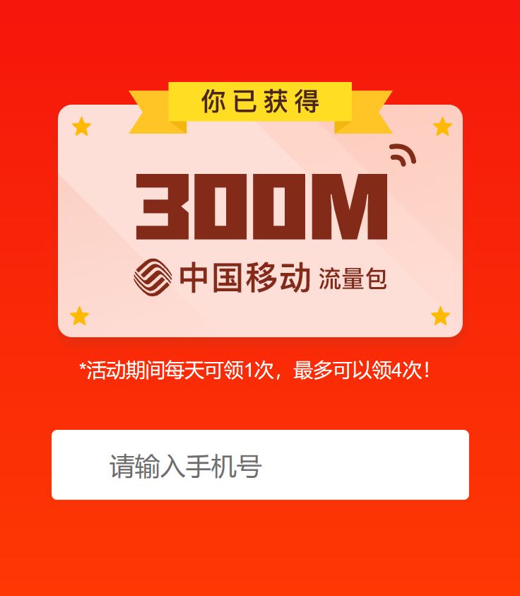 4.建議采用中國移動4g網絡參與活動,可以最快獲得流量包;