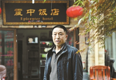 對(duì)于震中飯店來(lái)說(shuō),這樣幾百人聚在一起的畫(huà)面已經(jīng)許久沒(méi)有出現(xiàn)。2008年5月12日,曠古未見(jiàn)的地震幾乎吞噬了整個(gè)映秀。剛剛在保險(xiǎn)公司辦完事的楊云青,在逃出保險(xiǎn)公司大門(mén)后,趕緊趕往孫子所在的學(xué)校。在滿(mǎn)操場(chǎng)彌漫的白灰中,他和幾個(gè)家長(zhǎng)一起徒手挖出了幾個(gè)孩子,第二天清晨,他又從電廠借來(lái)吊車(chē),把車(chē)開(kāi)進(jìn)了小學(xué)。一連9天,他始終和消防隊(duì)員一起奮戰(zhàn)在救援第一線(xiàn),最終成功救出12個(gè)人。此后,楊云青“映秀好人”的名聲傳播開(kāi)來(lái)。他所經(jīng)營(yíng)的震中飯店,也一度成為大家爭(zhēng)相參觀的景點(diǎn)。