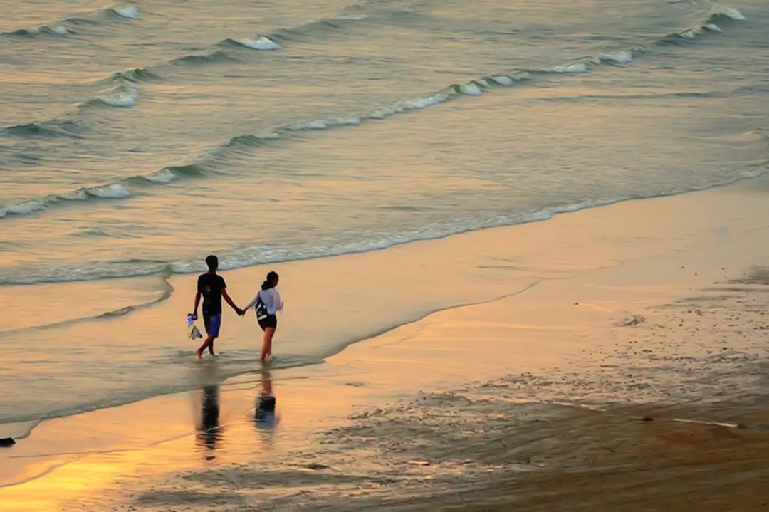 2018-07-22,廣東陽(yáng)江。夏日晚霞,一對(duì)情侶牽著手在海灘漫步,享受著陽(yáng)光的沐浴。作者:不老松
