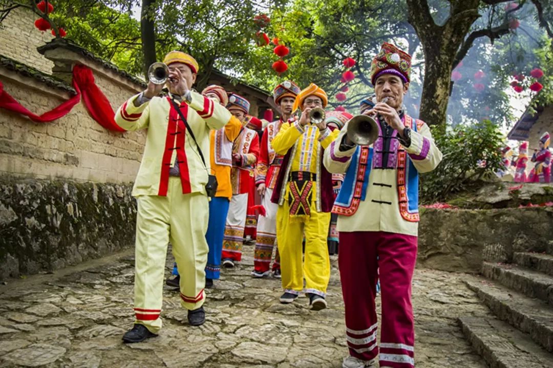 2018-12-29,廣西宜州流河寨。壯鄉(xiāng)傳統(tǒng)婚禮里的吹嗩吶。作者:藍(lán)景惠