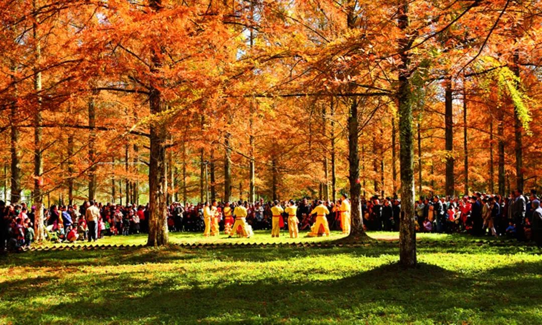 2018-11-03,湖北利川。金色的水杉林里滿是尋秋賞秋的人。作者:福葉依斯李傳書(shū)