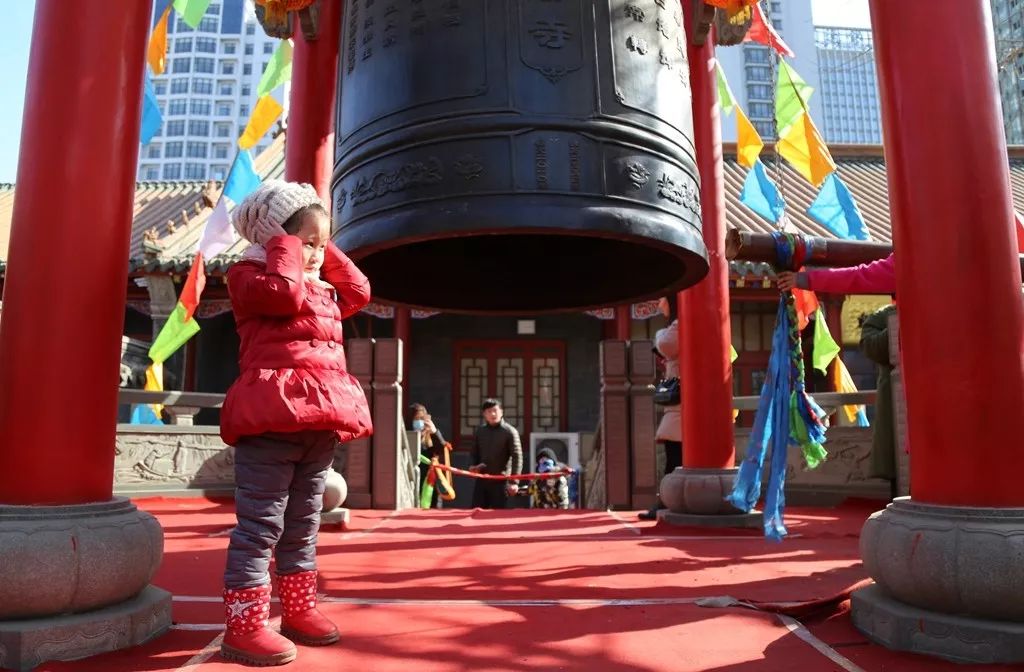 2018-02-16,遼寧沈陽(yáng)。廟會(huì)上,人們敲響祈福的鐘聲。作者:老頑童