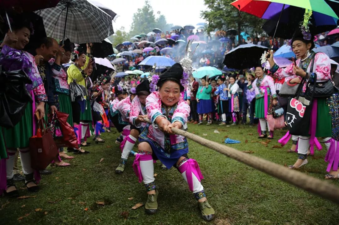 2018-09-27,廣西融水。苗族群眾在拔河比賽中喜迎國(guó)慶佳節(jié)。作者:大苗山人
