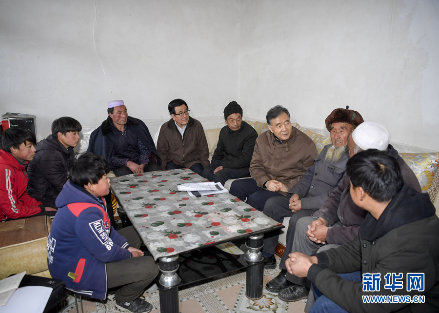 近日,中共中央政治局常委、全國政協(xié)主席汪洋在甘肅臨夏回族自治州調(diào)研脫貧攻堅工作,看望慰問貧困群眾和基層扶貧干部。這是1月13日,汪洋在積石山保安族東鄉(xiāng)族撒拉族自治縣劉集鄉(xiāng)肖家村看望慰問貧困戶。 新華社記者 李學(xué)仁 攝