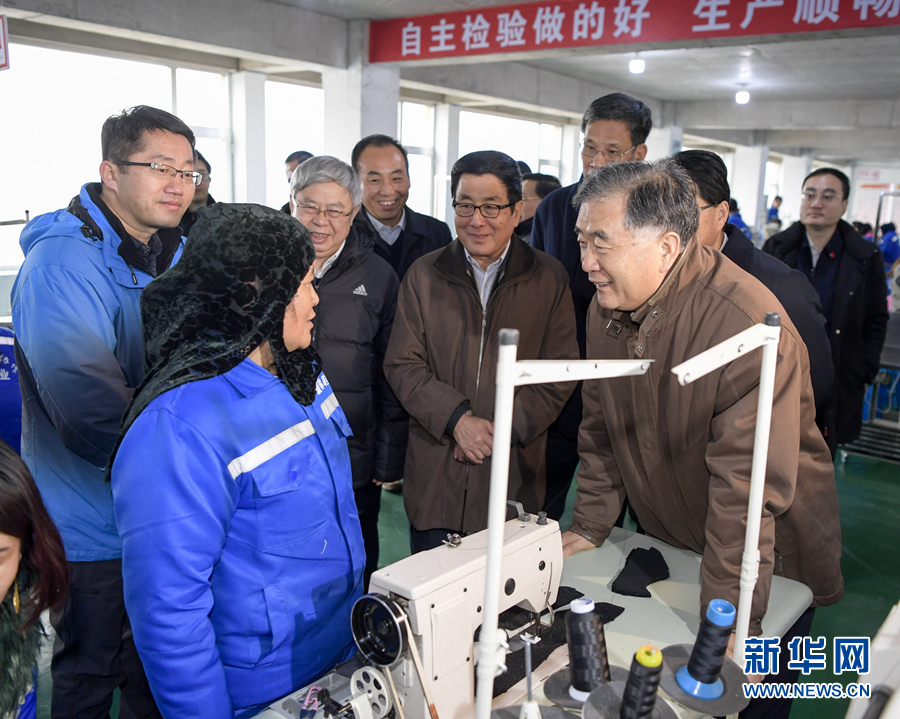 近日,中共中央政治局常委、全國政協(xié)主席汪洋在甘肅臨夏回族自治州調(diào)研脫貧攻堅工作,看望慰問貧困群眾和基層扶貧干部。這是1月14日,汪洋在和政縣考察扶貧車間,調(diào)研東西部扶貧協(xié)作情況。 新華社記者 李學(xué)仁 攝