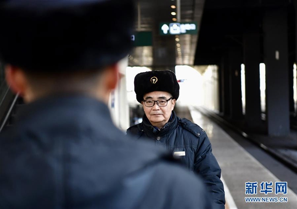 1月16日,李誠在西寧站巡查是否有旅客誤乘。新華社發(fā)(張龍 攝)