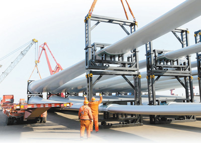 近日,大批國產(chǎn)成套風(fēng)電設(shè)備在江蘇省連云港港口集港準(zhǔn)備出口澳大利亞。