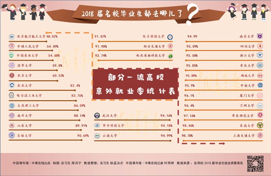 一直以來,“北上廣”是高校畢業(yè)生心中的“白月光”,即使沒戶口,去一線城市闖一闖也是不少大學(xué)生的共識(shí)。然而記者梳理后發(fā)現(xiàn),一流高校畢業(yè)生的京外就業(yè)率普遍超過50%。