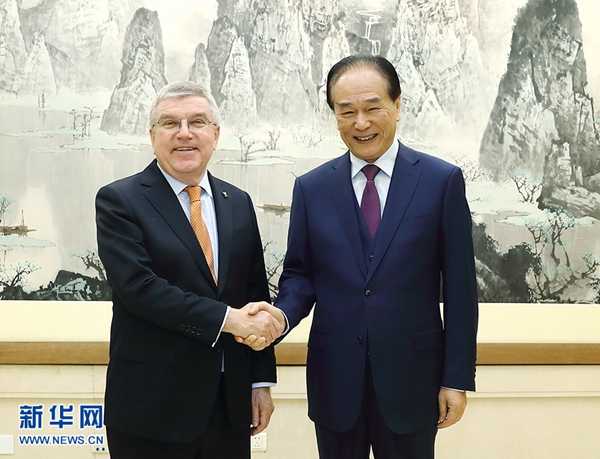 1月30日,新華社社長(zhǎng)蔡名照在北京會(huì)見國際奧委會(huì)主席巴赫。新華社記者 鞠鵬 攝