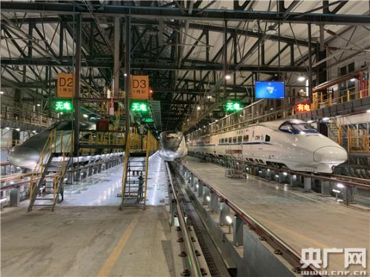 高鐵白天在線路上飛馳,夜晚才會進入動車所。因此,每天下午5點半到次日凌晨的這段時間成了郭志華和同事們最忙碌的時刻。