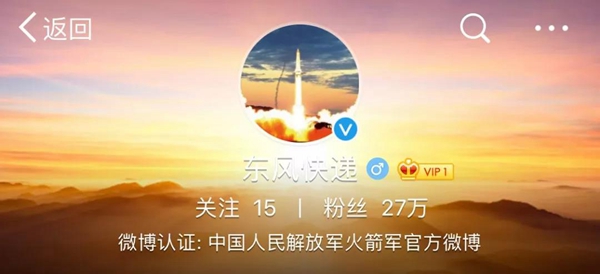 對于火箭軍官方微博上線
