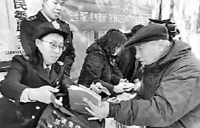 藥品監(jiān)管部門工作人員向居民宣傳安全用藥知識。光明圖片