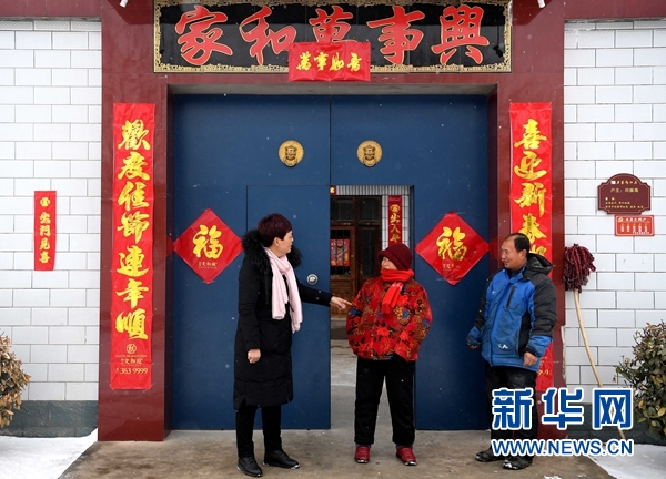 新春剛過(guò),瑞雪降中原。一片銀裝素裹間,一個(gè)暗紅色的門樓上“向陽(yáng)莊村”幾個(gè)金色大字格外醒目,門樓下葛樹(shù)芹正一邊掃雪一邊大聲地和村民們聊著天,歡聲笑語(yǔ)間滿滿的是幸福年味。