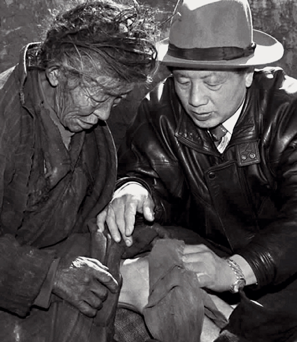 孔繁森在西藏阿里日土縣看望孤寡老人益西卓瑪 新華社照片