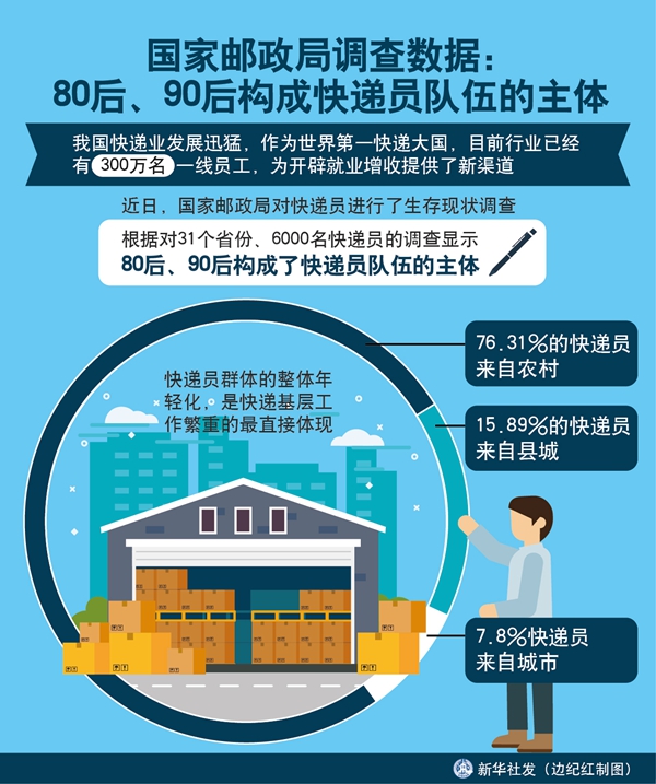 近日,國(guó)家郵政局對(duì)快遞員進(jìn)行了生存現(xiàn)狀調(diào)查,根據(jù)對(duì)31個(gè)省份、6000名快遞員的調(diào)查顯示,80后、90后構(gòu)成了快遞員隊(duì)伍的主體??爝f員群體的整體年輕化,是快遞基層工作繁重的最直接體現(xiàn)。76.31%的快遞員來自農(nóng)村,15.89%的快遞員來自縣城,僅有7.8%來自城市。