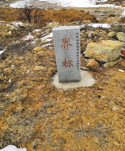 長(zhǎng)興島上的大連斑海豹國(guó)家級(jí)自然保護(hù)區(qū)界碑。受訪者供圖