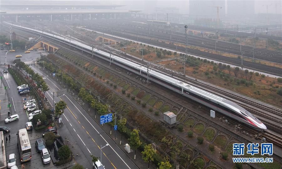 1月5日,G9次超長版“復興號”動車組列車駛入南京南站。新華社發(fā)(蘇陽 攝)