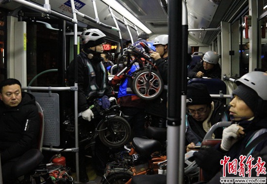 夜30路上有許多他的“車友”,其中一些是專門去鳳凰嶺等地爬山的,拄著登山杖,戴著裹住下巴的頭巾,背著登山包,這批人自稱“山友”。車?yán)锬挲g最大的是一對(duì)老夫婦,83歲了,每天上車都有人把最穩(wěn)當(dāng)?shù)淖蛔尳o他們。車上曾經(jīng)有位老人,“出勤率”比別人都高,被戲稱為“車長(zhǎng)”。后來“車長(zhǎng)”搬了家,改乘其他線路了。這些老人回程時(shí)往往已經(jīng)天亮,但他們大多不愛坐地鐵,覺得“公交車更方便”。