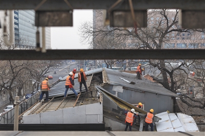 2018年3月23日,新文化街,工作人員在拆除一違章建筑。資料圖片 新京報(bào)記者 王嘉寧 攝