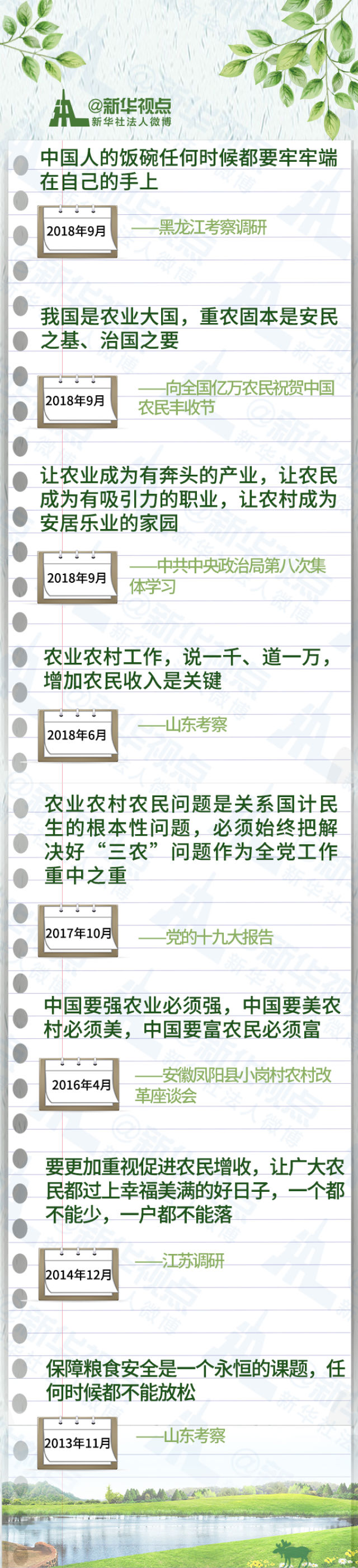 總書記情系“三農(nóng)”,無論是國內(nèi)考察調(diào)研,還是集體學(xué)習(xí)或出席會議,都對“三農(nóng)”工作提出過明確要求。