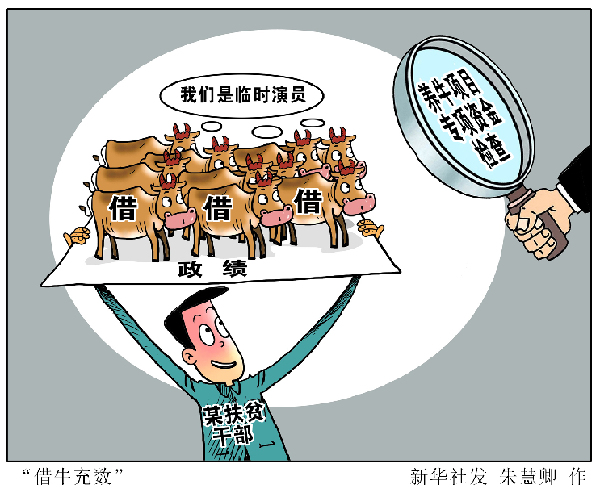 為應(yīng)對(duì)國(guó)務(wù)院扶貧辦養(yǎng)牛項(xiàng)目專(zhuān)項(xiàng)資金檢查,居然想出臨時(shí)借用百余頭牛放入牛圈,以營(yíng)造養(yǎng)牛項(xiàng)目“紅火”的主意。吉林省紀(jì)委近日通報(bào)一起借牛假冒政績(jī)的典型問(wèn)題,相關(guān)責(zé)任人受到嚴(yán)肅查處問(wèn)責(zé)?!敖枧3鋽?shù)”事件敲響警鐘:脫貧攻堅(jiān)越到最后時(shí)刻越要響鼓重錘,決不能搞急功近利、虛假政績(jī)的東西。