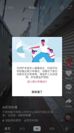 以抖音和快手為例,“青少年模式”開啟后,用戶每天使用時長不超過40分鐘,而且晚上10點至早上6點無法使用。另外,無法開啟直播和瀏覽同城頁面,也無法進行打賞、充值、提現(xiàn)、直播等操作。這些功能只有通過輸入密碼,關閉青少年模式才能再度開啟。