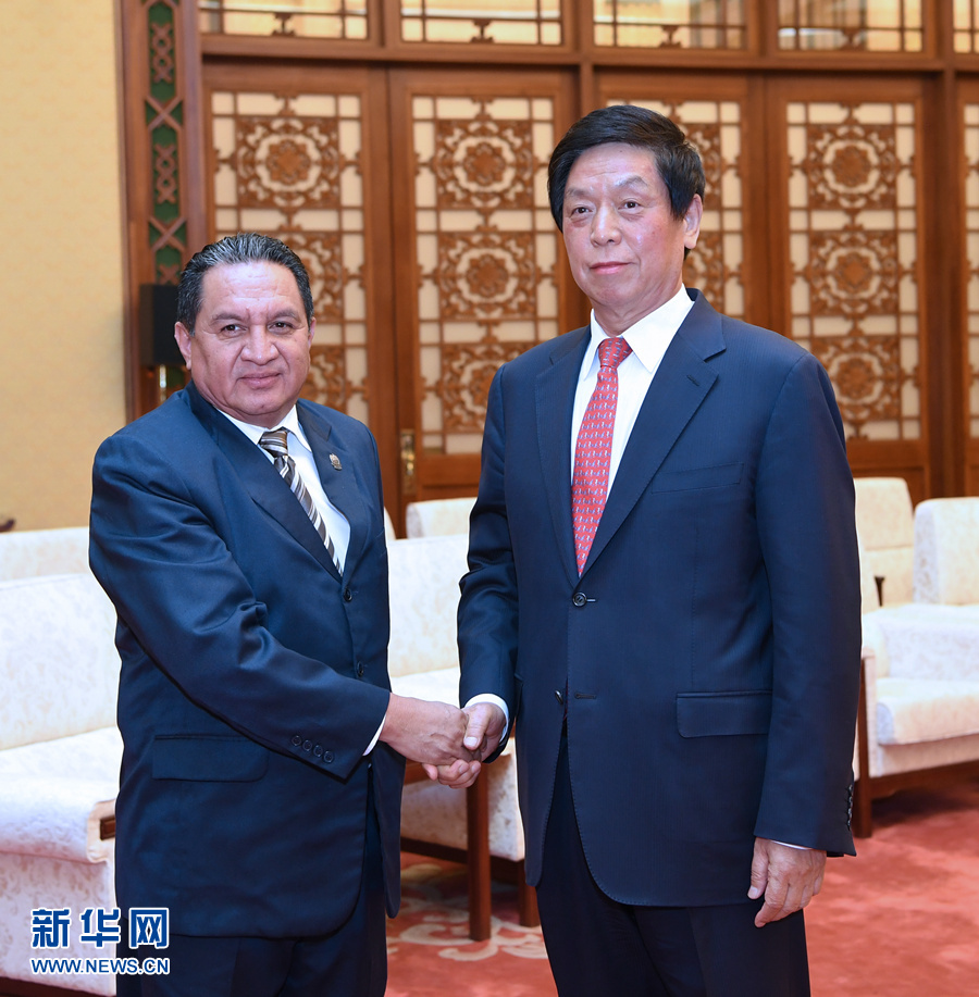 4月15日,全國(guó)人大常委會(huì)委員長(zhǎng)栗戰(zhàn)書在北京人民大會(huì)堂會(huì)見薩爾瓦多國(guó)民議會(huì)第一副議長(zhǎng)奧蘭特斯。 新華社記者 饒愛民 攝