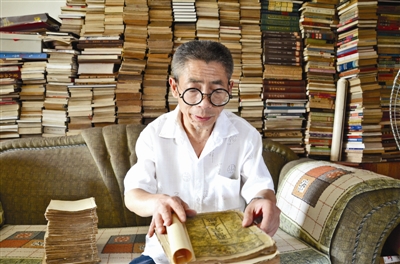 他眼中的這些“精神財(cái)富”,曾被妻子看成廢紙一堆,勸他賣書換錢供兒子上大學(xué),但他堅(jiān)決不肯,仍是繼續(xù)悄悄買書帶回家中,至今如此。