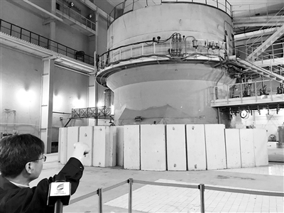 1958年,在蘇聯(lián)的幫助下,“一堆一器”建成投運,開啟了中國原子能時代。近日,在參加“壯麗70年·奮斗新時代”活動期間,記者走進中國原子能科學研究院。圖為近日工作人員在我國第一座重水反應堆前講述相關歷史。本報記者 陳瑜 攝