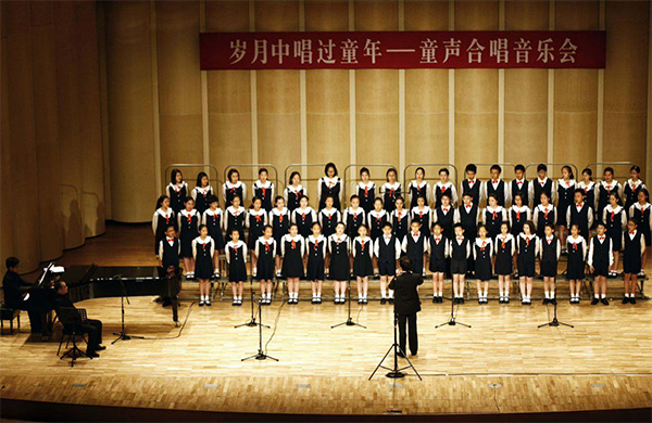 2012年12月2日,北京大學(xué)上演《歲月中唱過童年》童聲合唱音樂會。演唱會以近現(xiàn)代中國兒童音樂發(fā)展史為構(gòu)思脈絡(luò),精心選取近20首精彩曲目,涵蓋了從李叔同的《送別》等經(jīng)典歌曲。 新華社記者 劉彬 攝