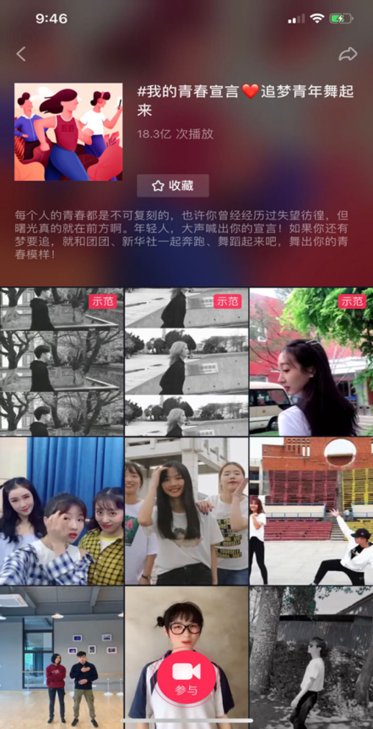為紀(jì)念五四運(yùn)動100周年,新華社全媒報(bào)道平臺聯(lián)合團(tuán)中央開設(shè) “我的青春宣言?追夢青年舞起來”話題。