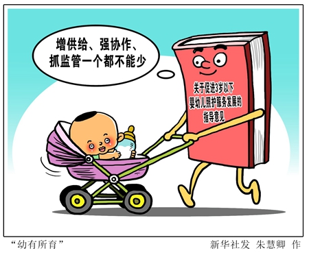 嬰幼兒的照護(hù)服務(wù)是保障和改善民生的重要內(nèi)容,事關(guān)嬰幼兒健康成長,事關(guān)千家萬戶。黨的十九大報(bào)告把“幼有所育”作為保障和改善民生的重要內(nèi)容。近日,國務(wù)院辦公廳印發(fā)了《關(guān)于促進(jìn)3歲以下嬰幼兒照護(hù)服務(wù)發(fā)展的指導(dǎo)意見》。