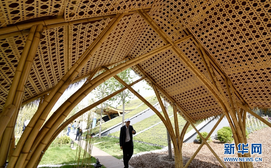 5月16日,游人在北京世園會國際竹藤組織園參觀。 當日,由國際竹藤組織主辦的榮譽日活動在北京世園會園區(qū)的國際竹藤組織園舉行。 新華社記者 李欣 攝