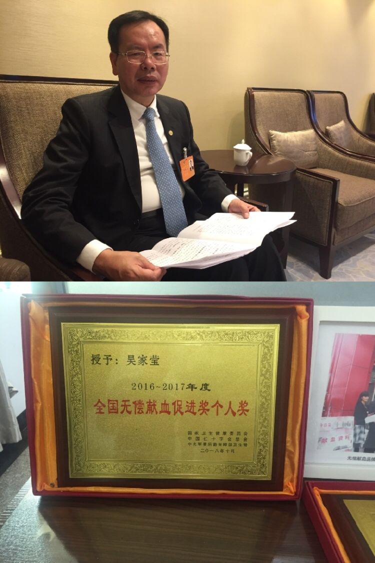 上圖:廈門市臺(tái)商投資企業(yè)協(xié)會(huì)會(huì)長(zhǎng)吳家瑩。下圖:吳家瑩獲得的“全國(guó)無(wú)償獻(xiàn)血促進(jìn)獎(jiǎng)個(gè)人獎(jiǎng)”。新華社記者 許雪毅 攝