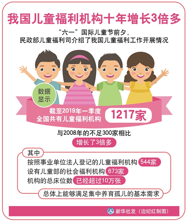 新華社北京5月31日電(記者羅爭光)“六一”國際兒童節(jié)前夕,民政部兒童福利司介紹了我國兒童福利工作開展情況。數(shù)據(jù)顯示,截至今年一季度,全國共有兒童福利機(jī)構(gòu)1217家,與2008年的不足300家相比,增長了3倍多。