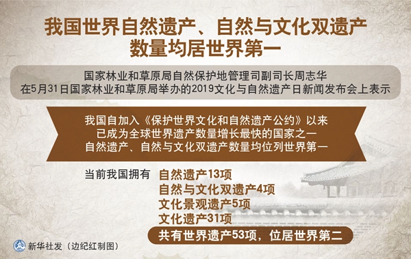 她是在31日國(guó)家林業(yè)和草原局舉辦的2019文化與自然遺產(chǎn)日新聞發(fā)布會(huì)上作出上述表示的。當(dāng)前我國(guó)擁有自然遺產(chǎn)13項(xiàng)、自然與文化雙遺產(chǎn)4項(xiàng)。