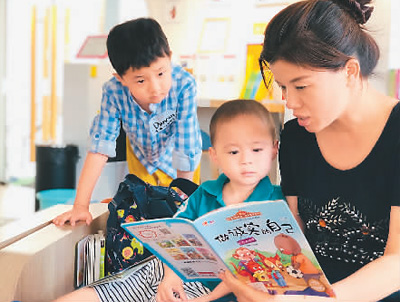 兒童圖書館內(nèi),家長正在為孩子閱讀繪本。記者 孫亞慧攝