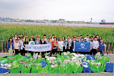 仁渡海洋的志愿者在凈灘活動中留影。