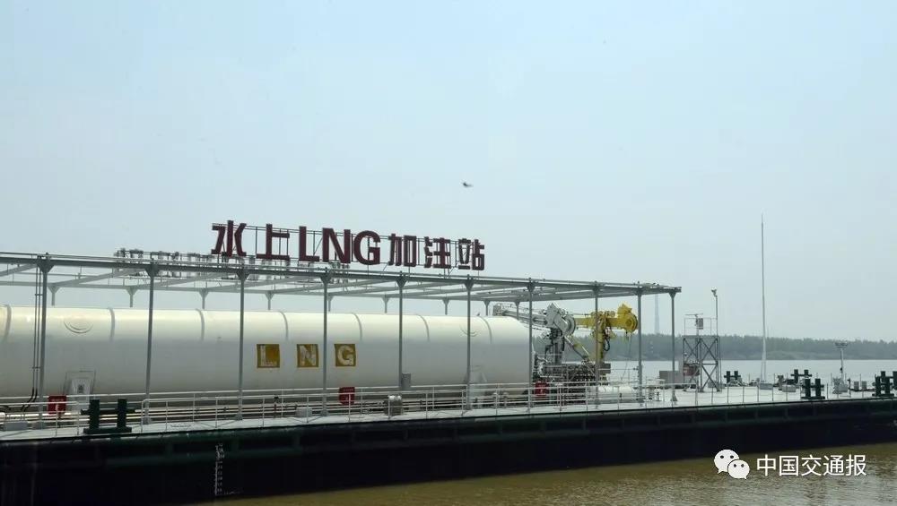 距離邵伯船閘八十公里的南京八卦洲上,海港星1號,全國首個水上LNG加注站,已為過往船舶加注LNG約2000噸。
