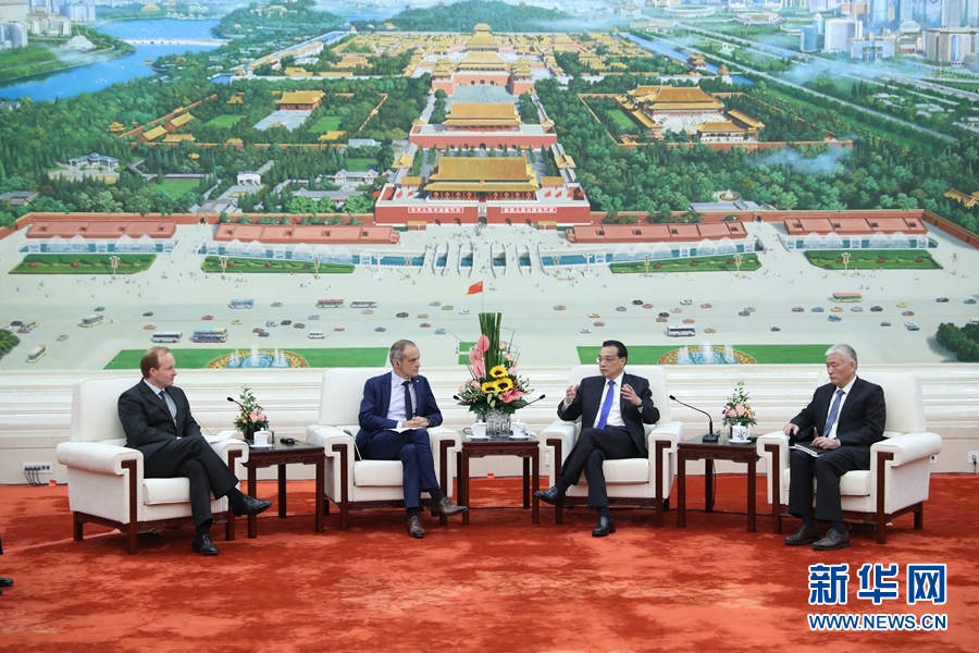 6月20日,國(guó)務(wù)院總理李克強(qiáng)在北京人民大會(huì)堂會(huì)見(jiàn)來(lái)華出席“全球首席執(zhí)行官委員會(huì)”第七屆圓桌峰會(huì)的知名跨國(guó)公司負(fù)責(zé)人,并同他們座談。 新華社記者丁林?jǐn)z